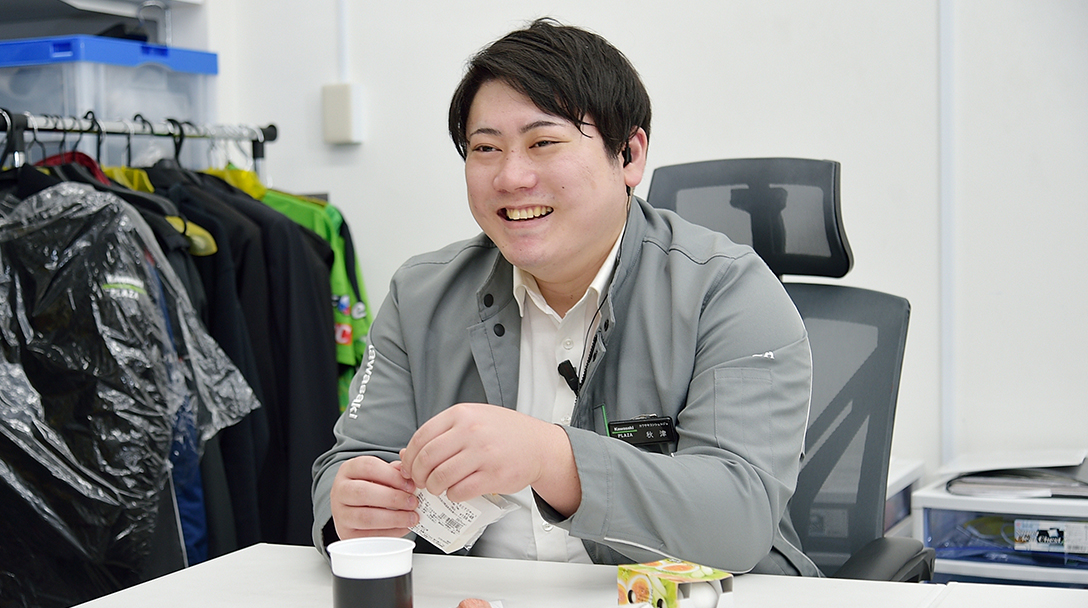 今回は、カワサキプラザ東京大田にて店舗運営スタッフを務める入社1年目の秋津さんに1日密着し、リアルな働き方や雰囲気をお届けします。