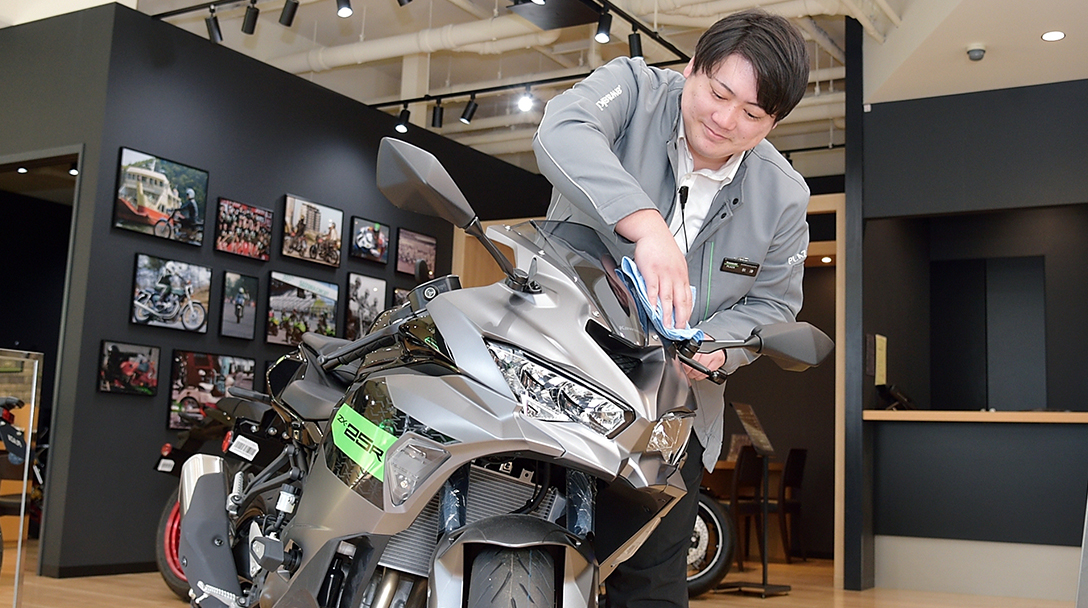 接客中は「“売る”のではなく、お客様が思い描く理想像に合ったバイクを一緒に選ぶこと」を心がけています。